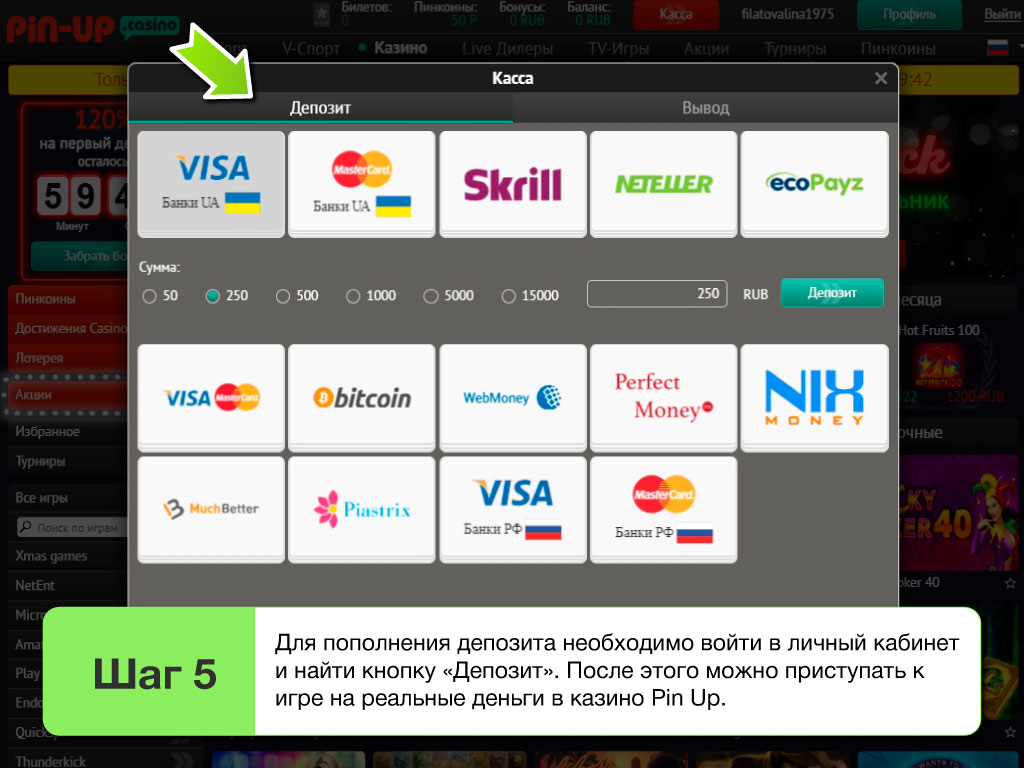 Как играть в casino Pin Up Bet с выводом денег на карту или кошелек?